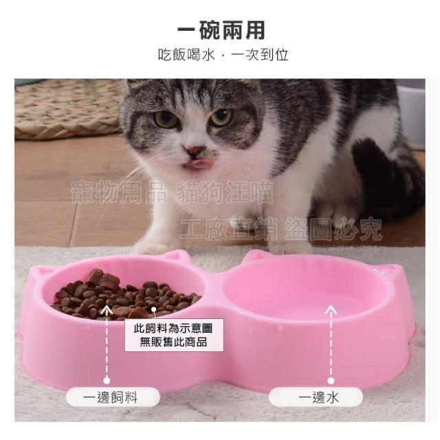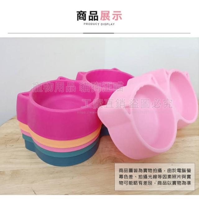 貓狗汪喵彩色貓臉雙碗 貓雙碗 貓耳雙碗(貓耳造型碗 寵物雙碗 造型寵物碗)