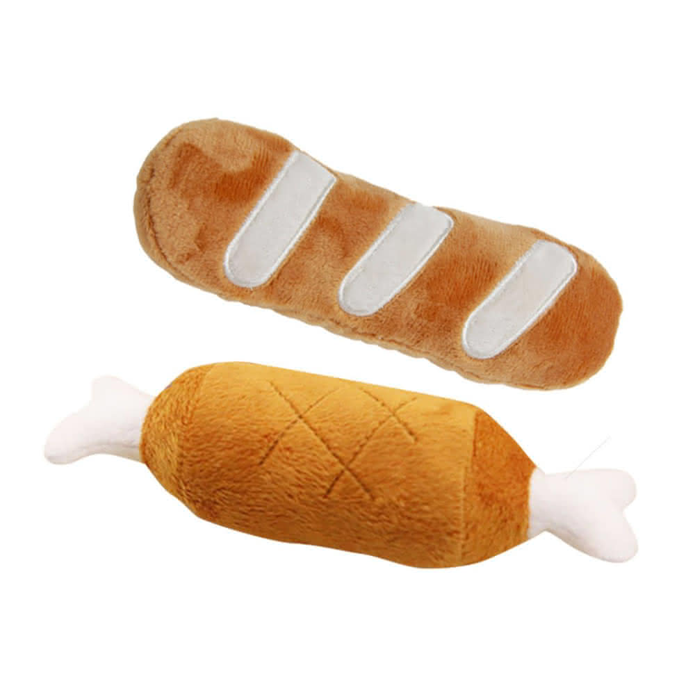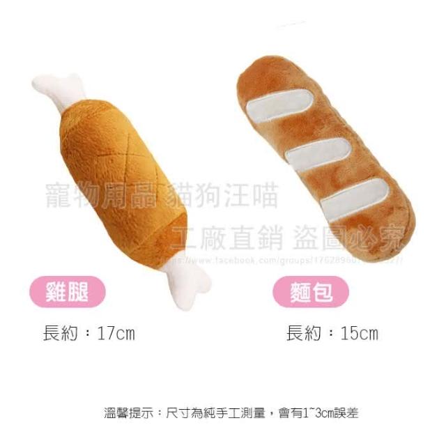 貓狗汪喵雞腿麵包絨毛啾啾玩具 狗絨毛玩具 咬咬玩具 啃咬玩具(寵物雞腿玩具 麵包玩具 寵物玩具)