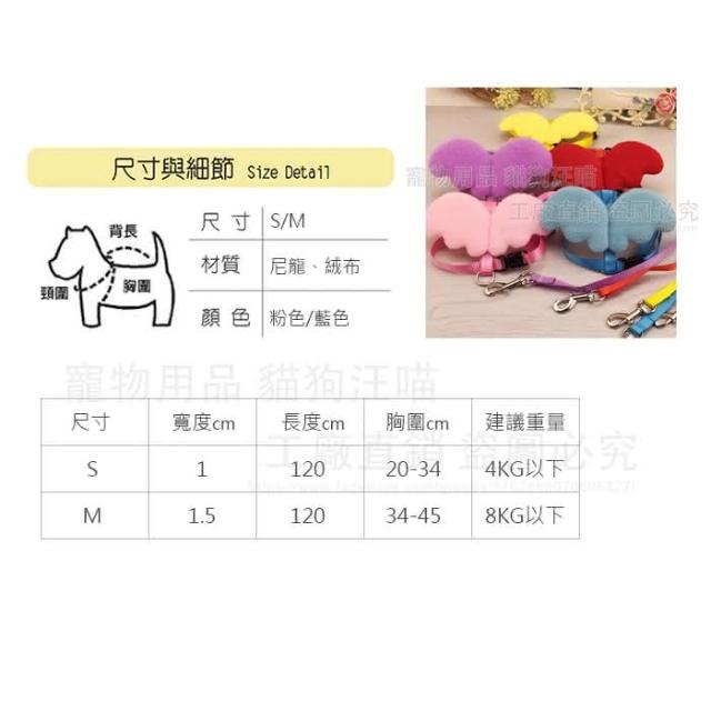貓狗汪喵S號 天使翅膀胸背牽繩 寵物胸背 狗胸背 貓胸背 寵物牽繩 寵物用品(天使胸背 翅膀胸背 溜狗繩)