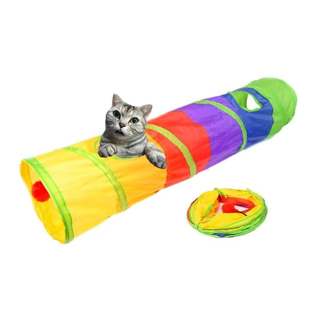 貓狗汪喵繽紛彩色可折疊貓隧道 貓玩具 貓樂園(折疊貓隧道 寵物玩具 寵物隧道)