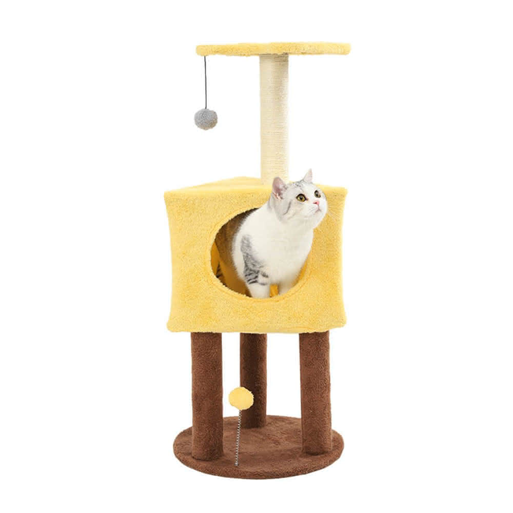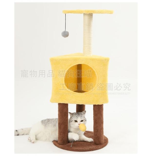 貓狗汪喵起司撞色三層貓跳台 貓樂園 絨球貓跳台 貓磨爪 貓別墅(貓跳台 貓玩具 貓爬架)