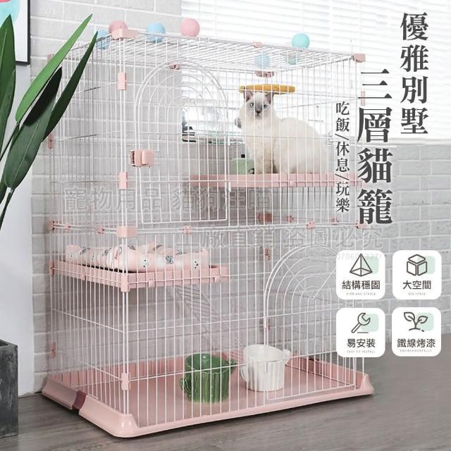 貓狗汪喵優雅別墅三層貓籠 貓屋 鐵線烤漆 三層貓別墅 閣樓式貓籠 貓跳台 貓用品(三層貓籠 貓籠 大空間 寵物籠)