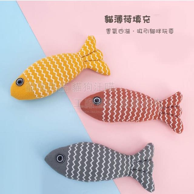 貓狗汪喵麻布貓薄荷波浪魚 抱枕玩具 貓薄荷玩具(自嗨玩具 寵物玩具 逗貓玩具)
