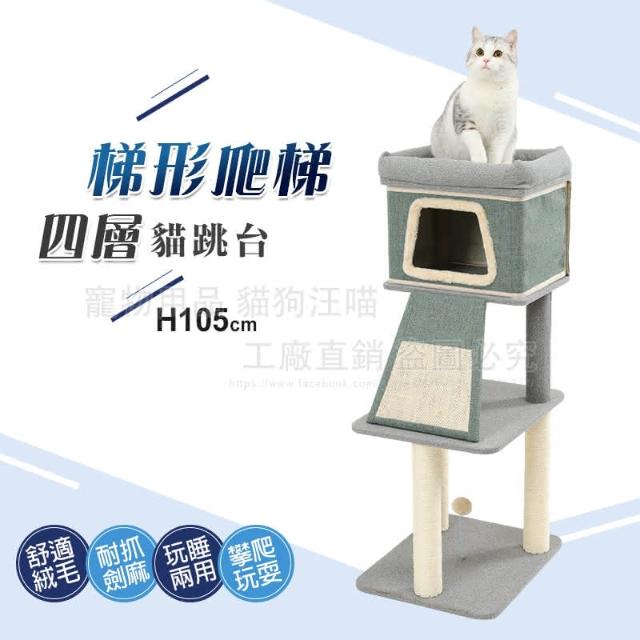 貓狗汪喵梯形爬梯四層貓跳台 貓抓柱 貓樂園 四層貓跳台 瞭望台 貓磨爪 貓玩具 貓爬架 劍麻柱 貓別墅