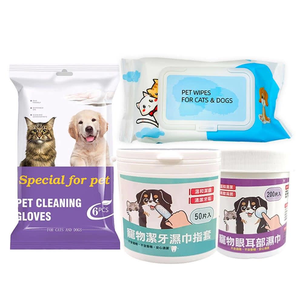 貓狗汪喵寵物濕紙巾 寵物免洗SPA手套 貓咪狗狗免洗濕巾 眼耳部濕紙巾 寵物擦澡手套 貓狗通用