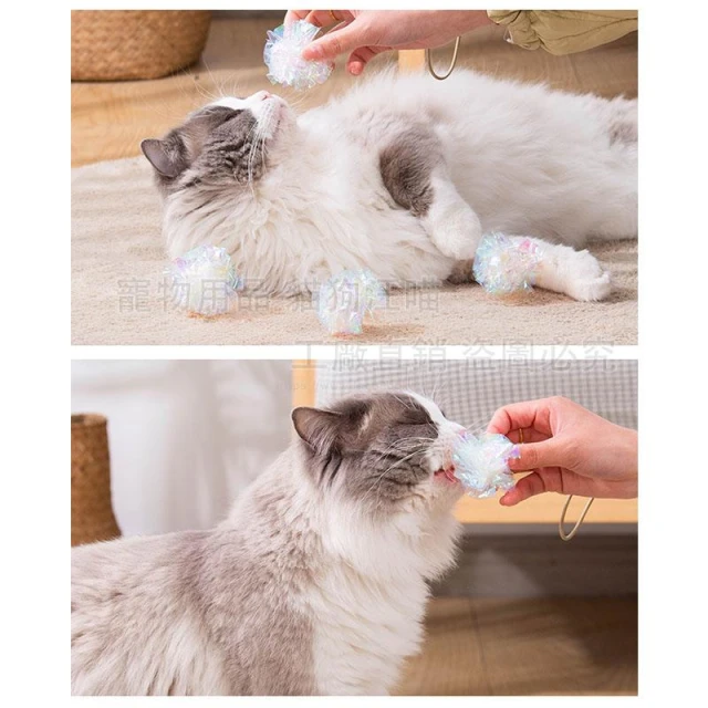 貓狗汪喵幻彩響紙球 馬卡龍毛絨球 毛線鈴鐺球 響紙球 毛絨球 毛線球 逗貓玩具 貓玩具 逗貓球