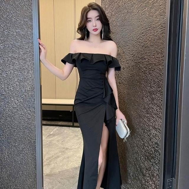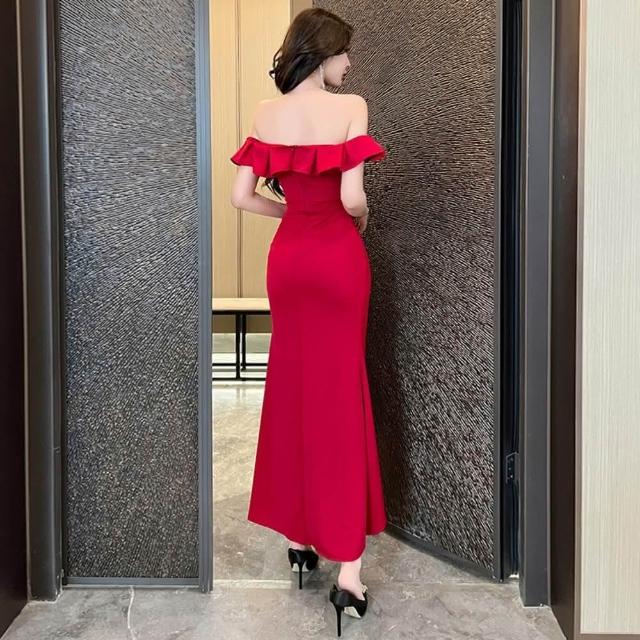 - 禮服一字領洋裝魚尾長裙