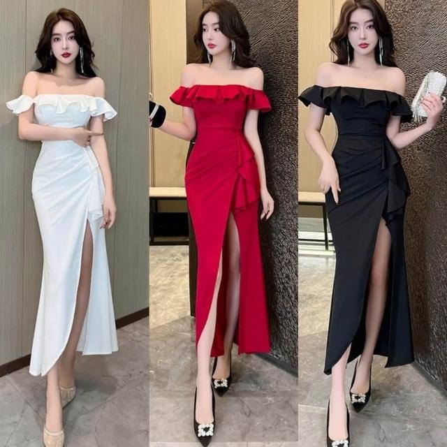- 禮服一字領洋裝魚尾長裙