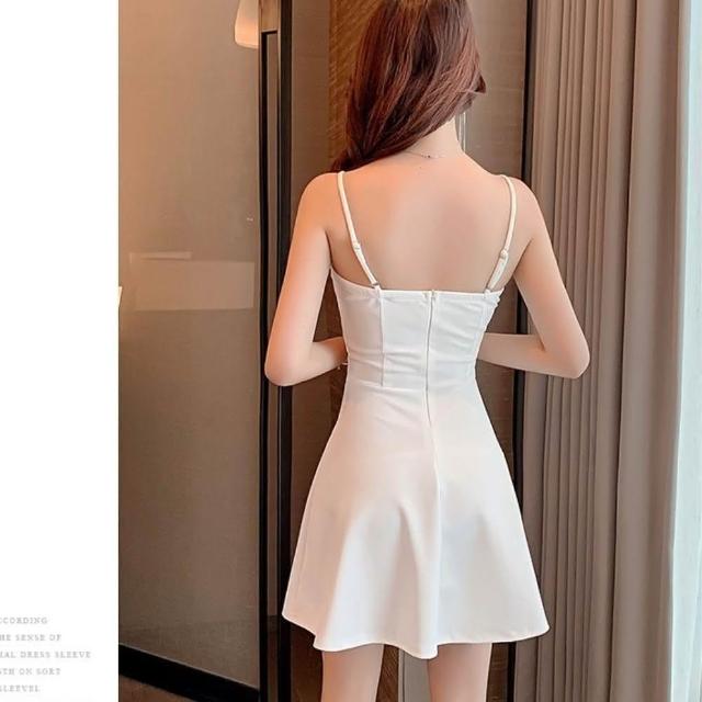 - 顯瘦輕奢性感A擺低胸無袖洋裝