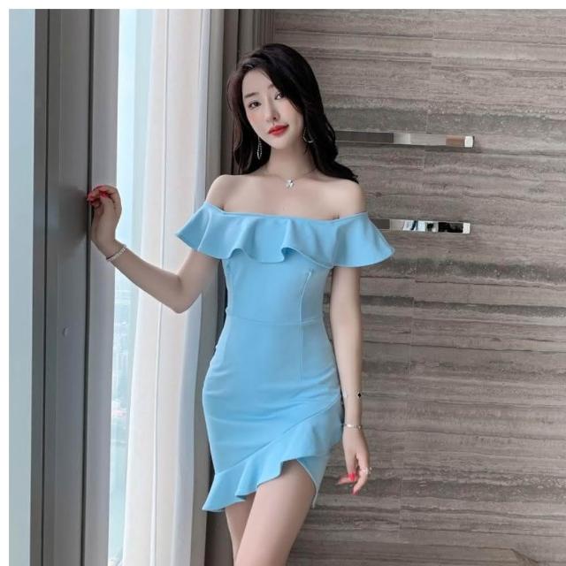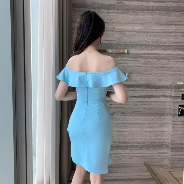 臧女皇特價新款 小個子一字肩洋裝夜店荷葉邊小禮服 露肩短裙 修身性感洋裝連衣裙 度假聚會派對夜店洋裝