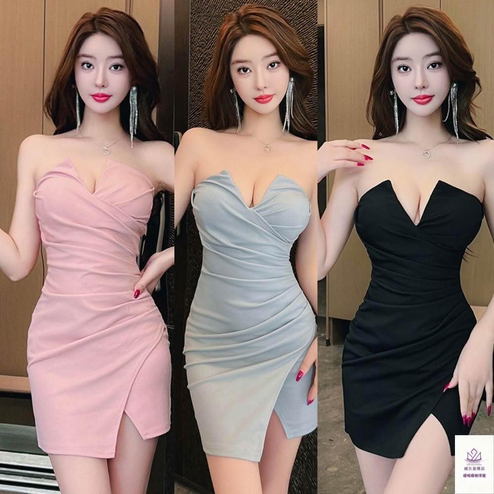 臧女皇三色特價新款夜店小禮服裙女氣質名媛性感低胸露背緊身抹胸V領小洋裝 度假休閒聚會生日派對約會裝扮