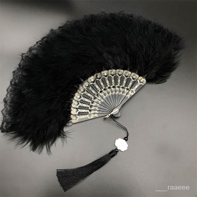 • 新款羽毛扇子 旗袍走秀折扇 舞