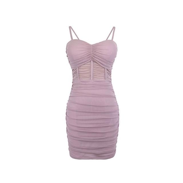 臧女皇新款S-L性感吊帶連衣裙 小禮服 包臀鏤空網紗洋裝 豆沙粉禮服包臀裙聚會派對夜店洋裝 連衣裙女裝