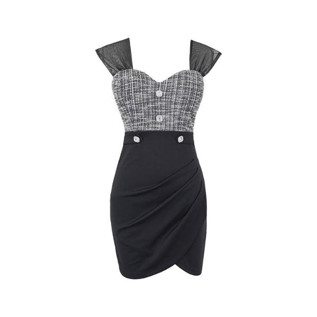 臧女皇小香風洋裝 菱格紋撞色夜店性感低胸露背包臀裙 「有胸墊」 聚會派對夜店洋裝 連衣裙女裝
