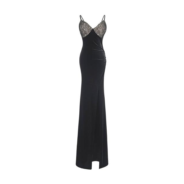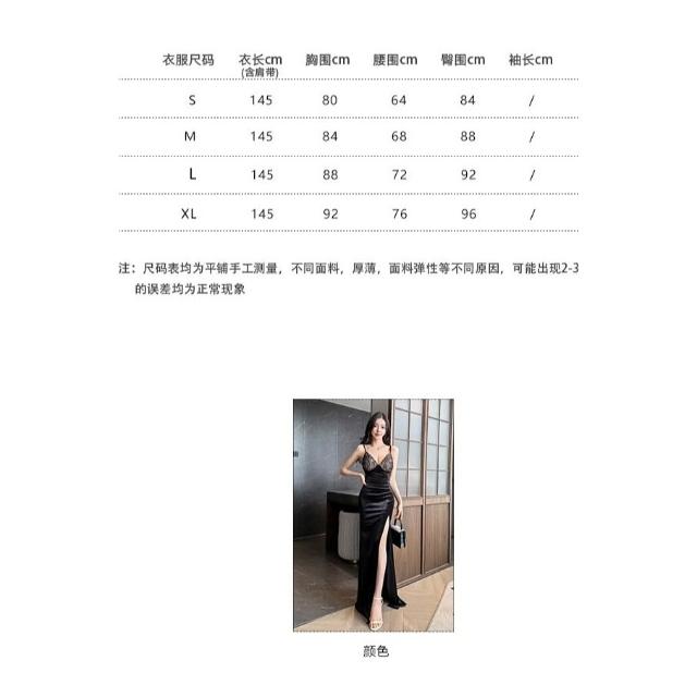 臧女皇S-XL新款拖地禮服黑色蕾絲裙 開叉燕尾服 性感低胸吊帶晚禮服 宴會聚會主持人禮服