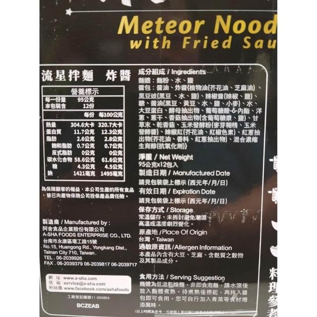 阿舍食堂阿舍食堂 流星拌麵-炸醬口味 一箱12包X一包95公克(阿舍食堂 流星拌麵)
