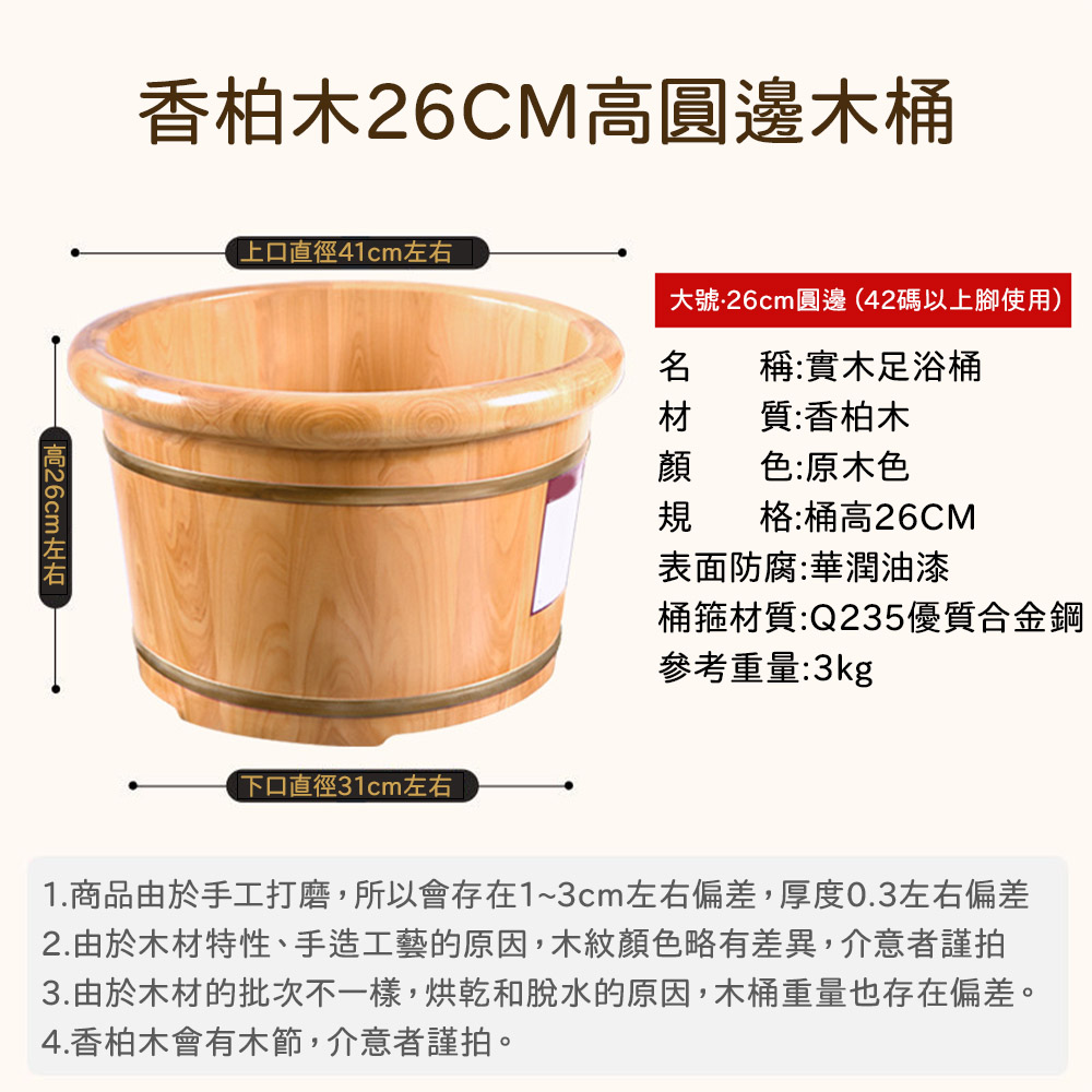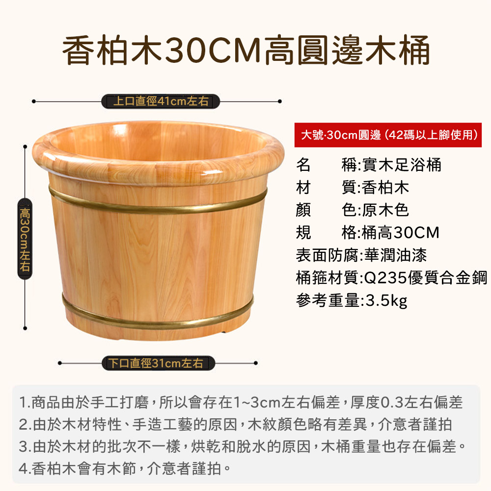 EARISE 雅蘭仕泡腳木桶 香柏木足浴桶 加厚木盆洗腳盆 實木洗腳桶 家用泡腳盆