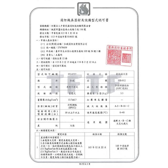 💥消防倉庫💥10型『車用』ABC手提蓄壓式乾粉滅火器(HB-012)附掛勾/國家認證品/消防署認可雷射標籤(探測器)
