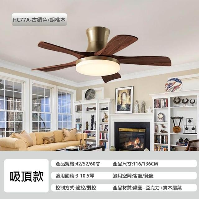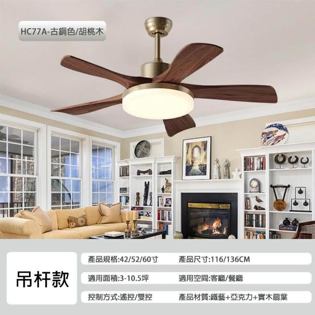 LADUTA 拉布塔吊扇 吊扇燈 電風扇 吸頂燈 DC風扇 實木扇葉 智能變頻 正反轉 靜音電機 客廳 家用 商用 HC77A