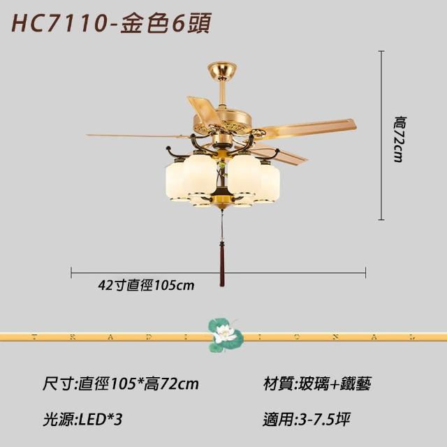 LADUTA 拉布塔42/52寸新中式清荷風扇燈 3/6頭風扇燈 3-7.5坪左右適用 吊扇燈 吸頂燈 電風扇 燈具 燈飾 客廳餐廳吊燈 7105