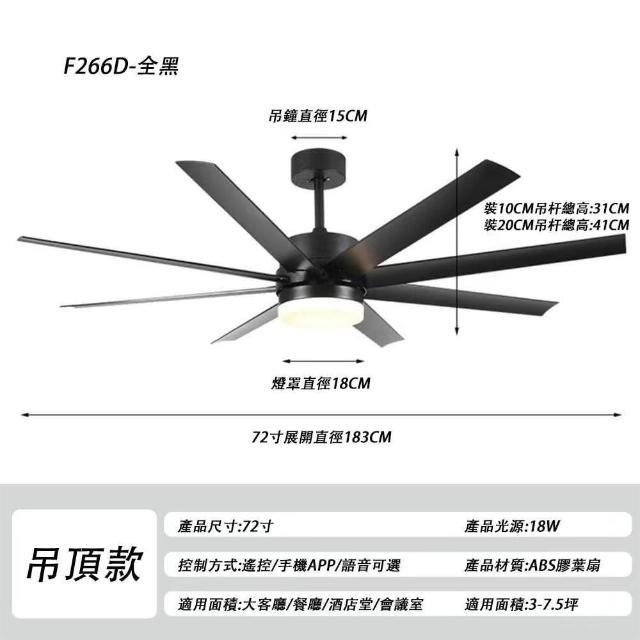 LADUTA 拉布塔電扇燈 工業吊扇 風扇燈 膠葉 工業風 72寸商用吊扇燈 八葉吊扇 工業扇 7.5坪左右適用 F266D