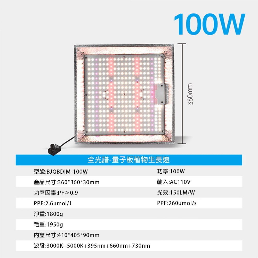 LADUTA 拉布塔LED植物燈 100W 全光譜可調光量子板 植物生長燈 種植燈 補光燈 室內陽台 多肉蔬菜果樹育苗專用