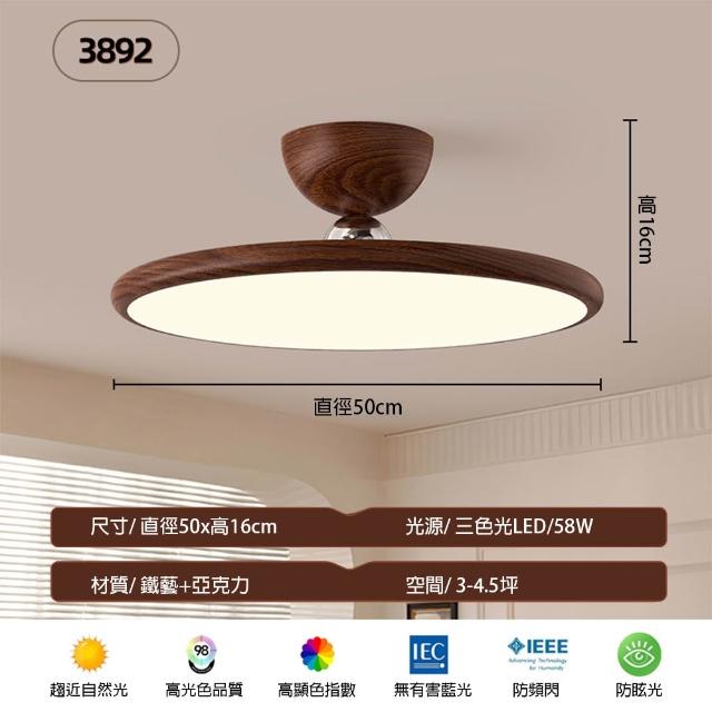 LADUTA 拉布塔中古風胡桃木吸頂燈 高顯色無藍光危害 三色光客廳卧室主燈