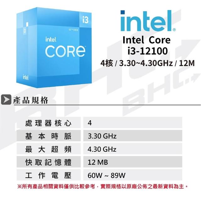 Intel 英特爾CORE I3-12100 四核心 中央處理器(盒裝)