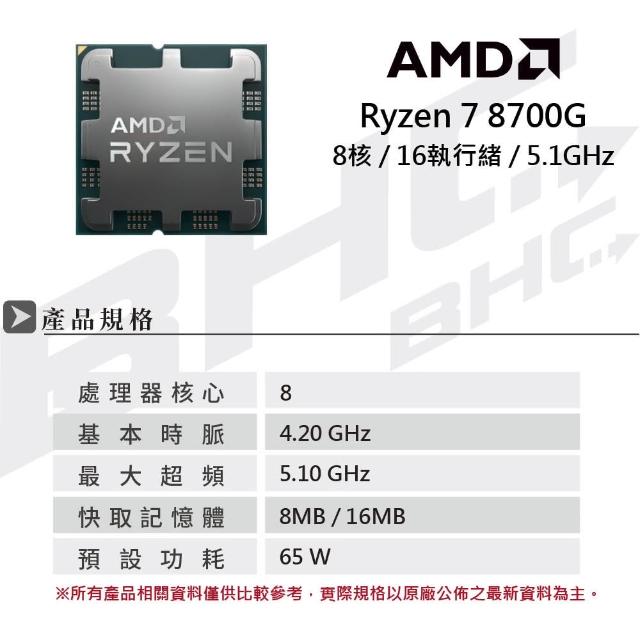 AMD 超微Ryzen 7-8700G 八核心 中央處理器(盒裝)