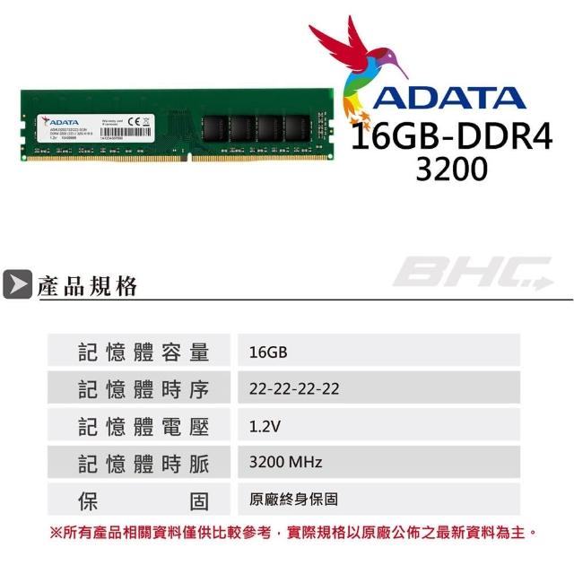 ADATA 威剛DDR4 3200 16GB 桌上型記憶體