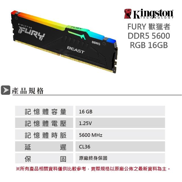 Kingston 金士頓FURY Beast DDR5 5600 16GB 桌上型記憶體