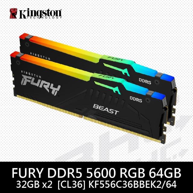 Kingston 金士頓金士頓 FURY Beast DDR5 5600 64G32Gx2 RGB桌上型記憶體