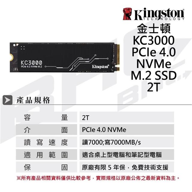 Kingston 金士頓KC3000 2TB PCIe 4.0 NVMe M.2 SSD