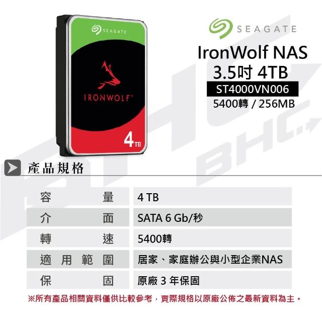 SEAGATE 希捷4TB 3.5吋 NAS硬碟(ST4000VN006)