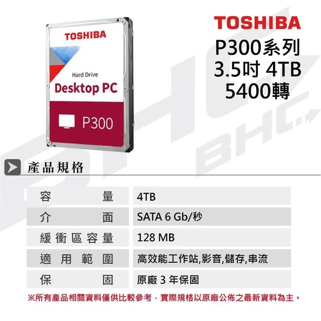 東芝 P300 4TB 3.5吋桌上型硬碟(HDWD240UZSVA)