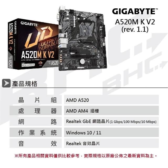 GIGABYTE 技嘉A520M K V2 主機板