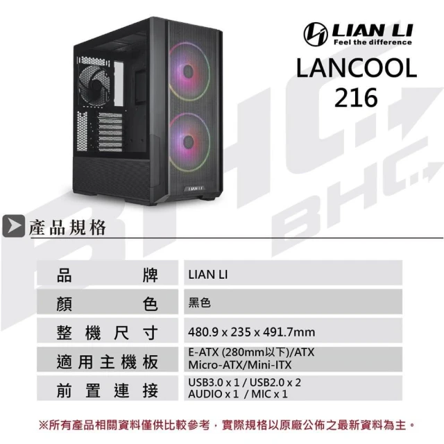 LIAN LI 聯力LANCOOL 216 ARGB 含濾網 ATX/玻璃透側機殼