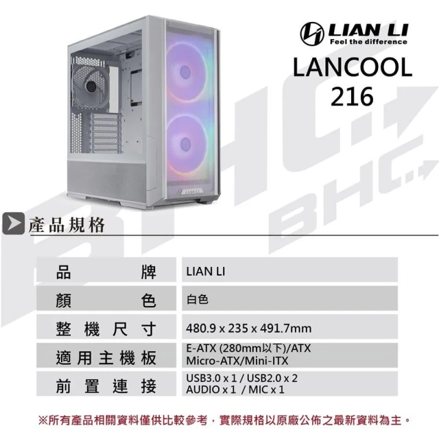 LIAN LI 聯力LANCOOL 216 ARGB 含濾網 ATX/玻璃透側機殼 白色