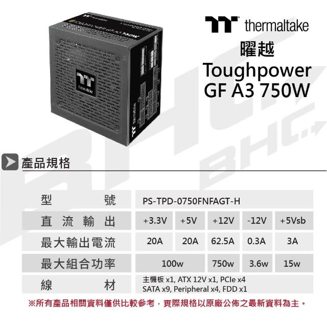 Thermaltake 曜越鋼影 Toughpower GF A3 750W ATX3.0 金牌電源供應器