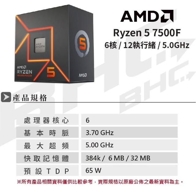 AMD 超微Ryzen 5-7500F MPK版(無外盒含風扇) 六核心 中央處理器