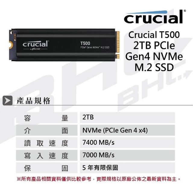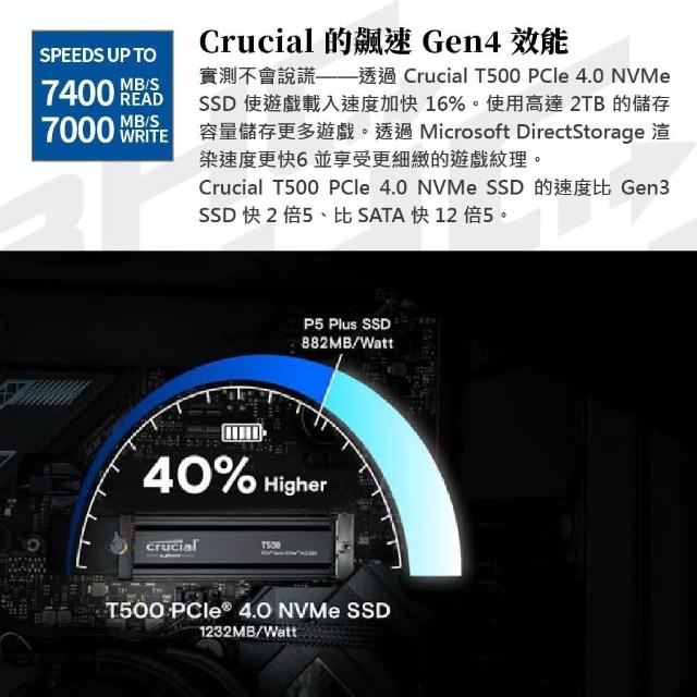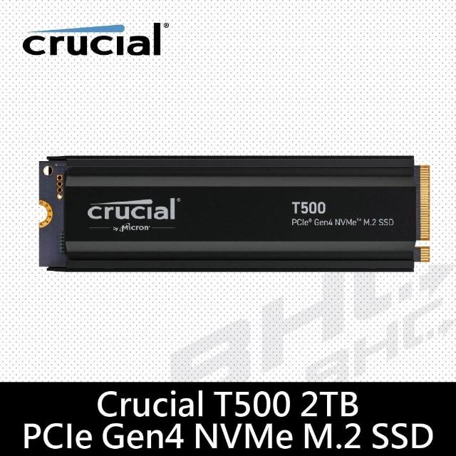 Crucial 美光T500 2TB PCIe Gen4 NVMe M.2 SSD 含散熱器