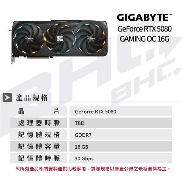 GIGABYTE 技嘉GeForce RTX 5080 GAMING OC 16G 顯示卡