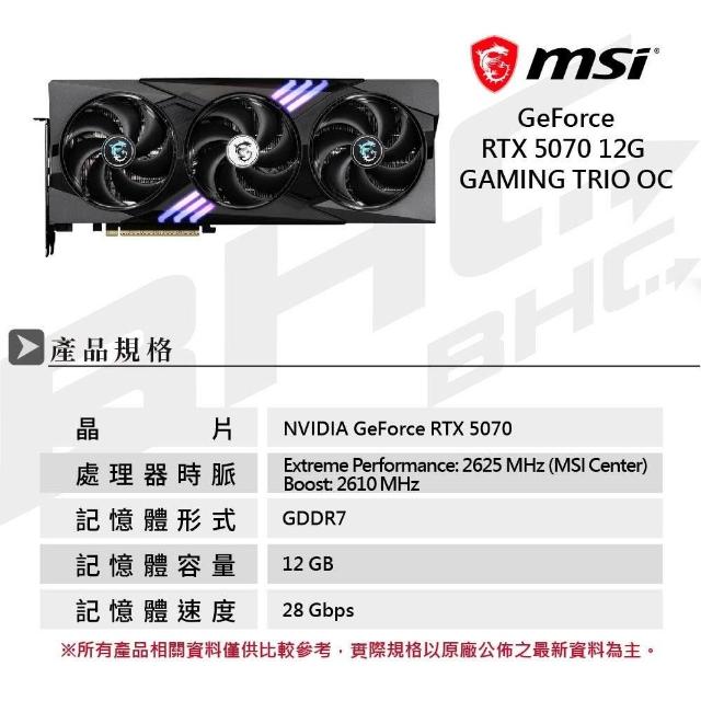 MSI 微星RTX 5070 12G GAMING TRIO OC 顯示卡
