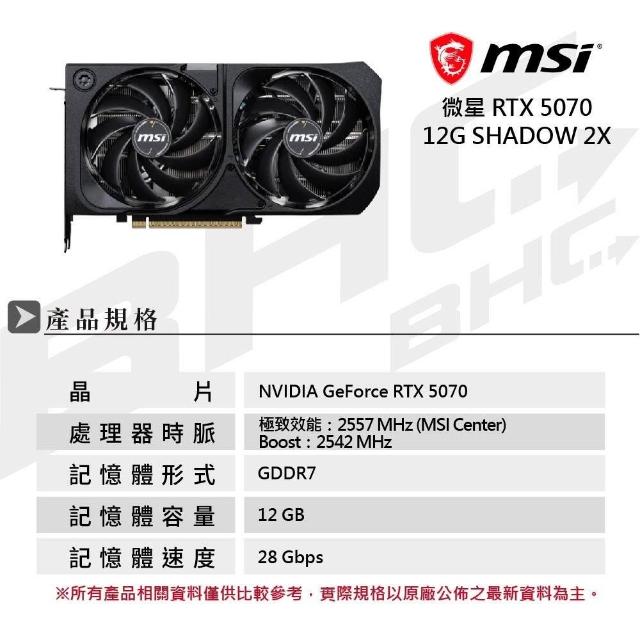 MSI 微星RTX 5070 12G SHADOW 2X OC 顯示卡