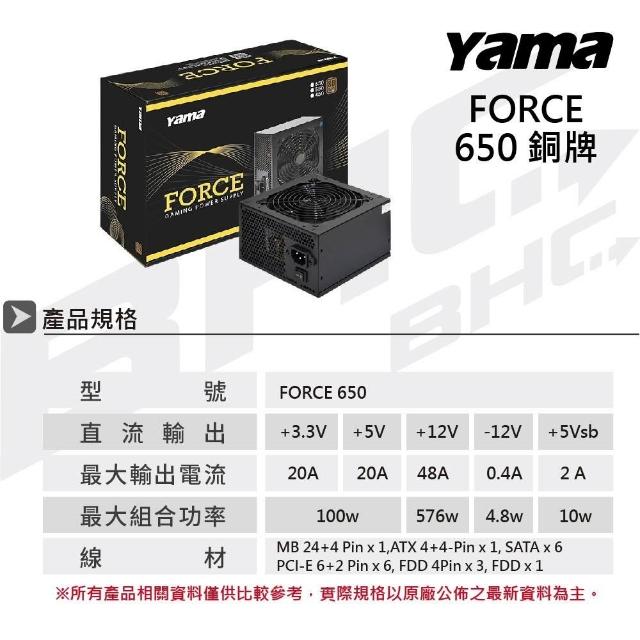 YAMA 德隆FORCE 650W 80+銅牌 電源供應器 5年保固