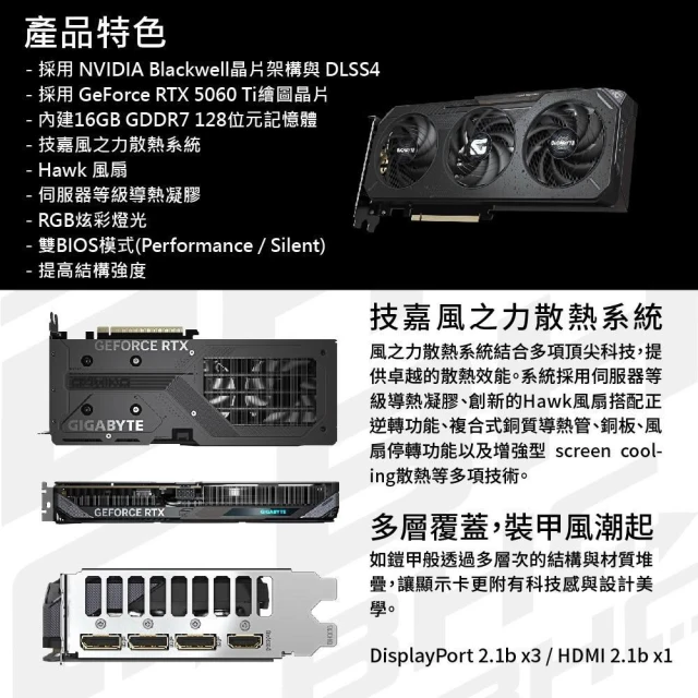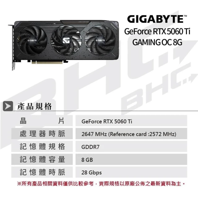 GIGABYTE 技嘉GeForce RTX 5060 Ti GAMING OC 8G 顯示卡