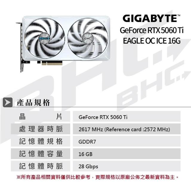 GIGABYTE 技嘉GeForce RTX 5060 Ti EAGLE OC ICE 16G 顯示卡