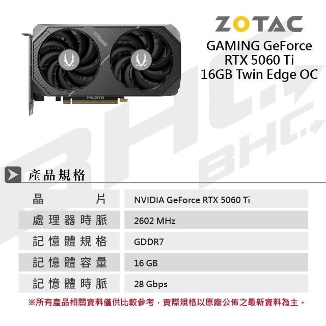 ZOTAC 索泰RTX 5060 Ti 16GB Twin Edge OC 顯示卡