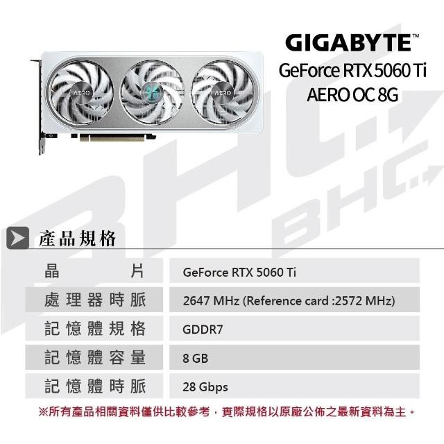 GIGABYTE 技嘉GeForce RTX 5060 Ti AERO OC 8G 顯示卡
