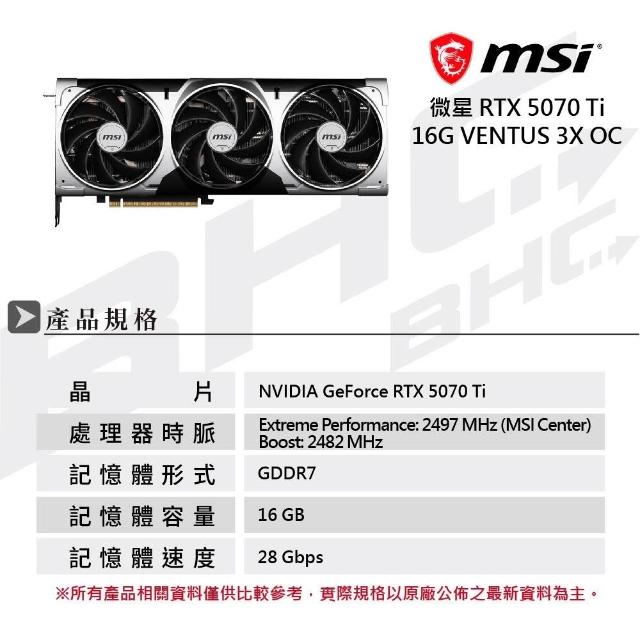 MSI 微星RTX 5070 Ti 16G VENTUS 3X OC 顯示卡